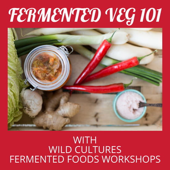 Join Olivia from Wild Cultures and learn how to make delicious fermented veggies; kimchi, sauerkraut and traditional pickles full of tangy, probiotic goodness