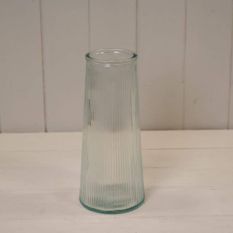 Simple ribbed, clear glass vase, perfect for displaying whatever colour flowers you desire!