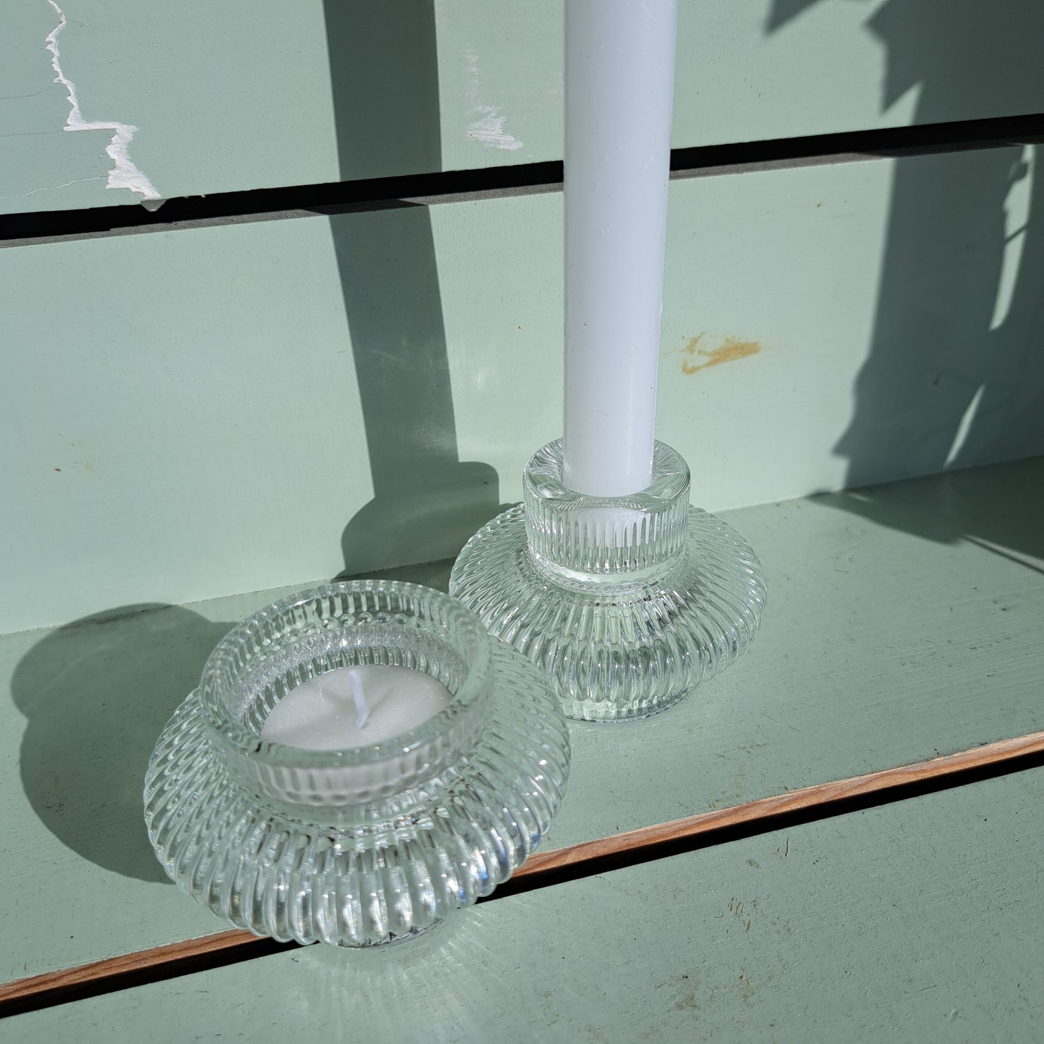 One way up for dinner candles, the other way up for tea lights! And if you get two or more, they can be stacked too!