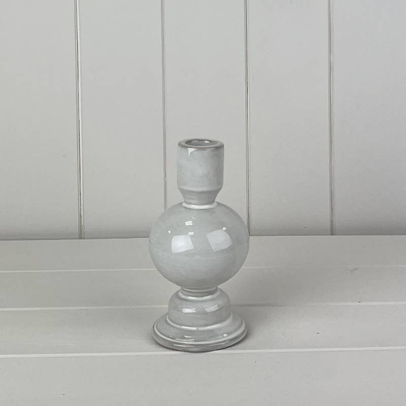 Glazed white ceramic candlestick - medium