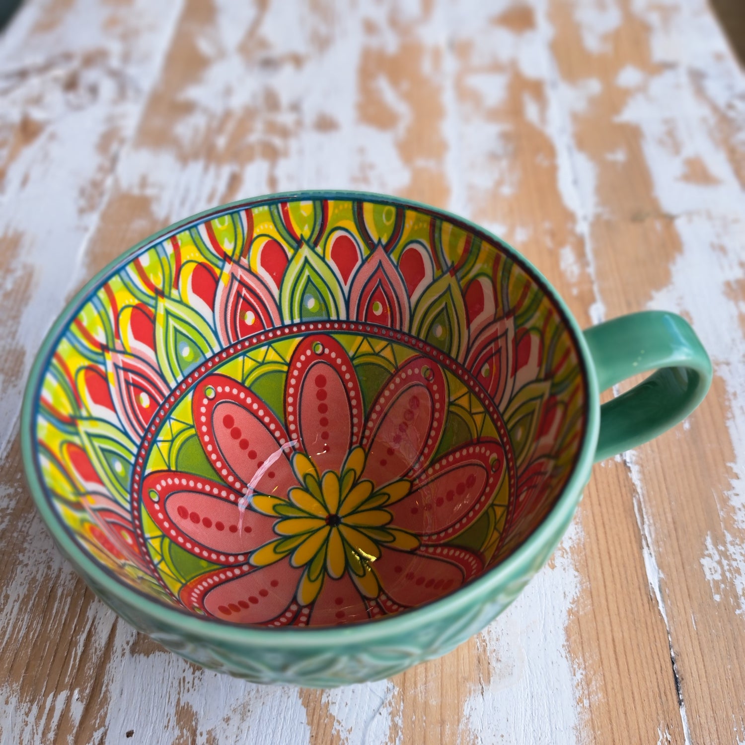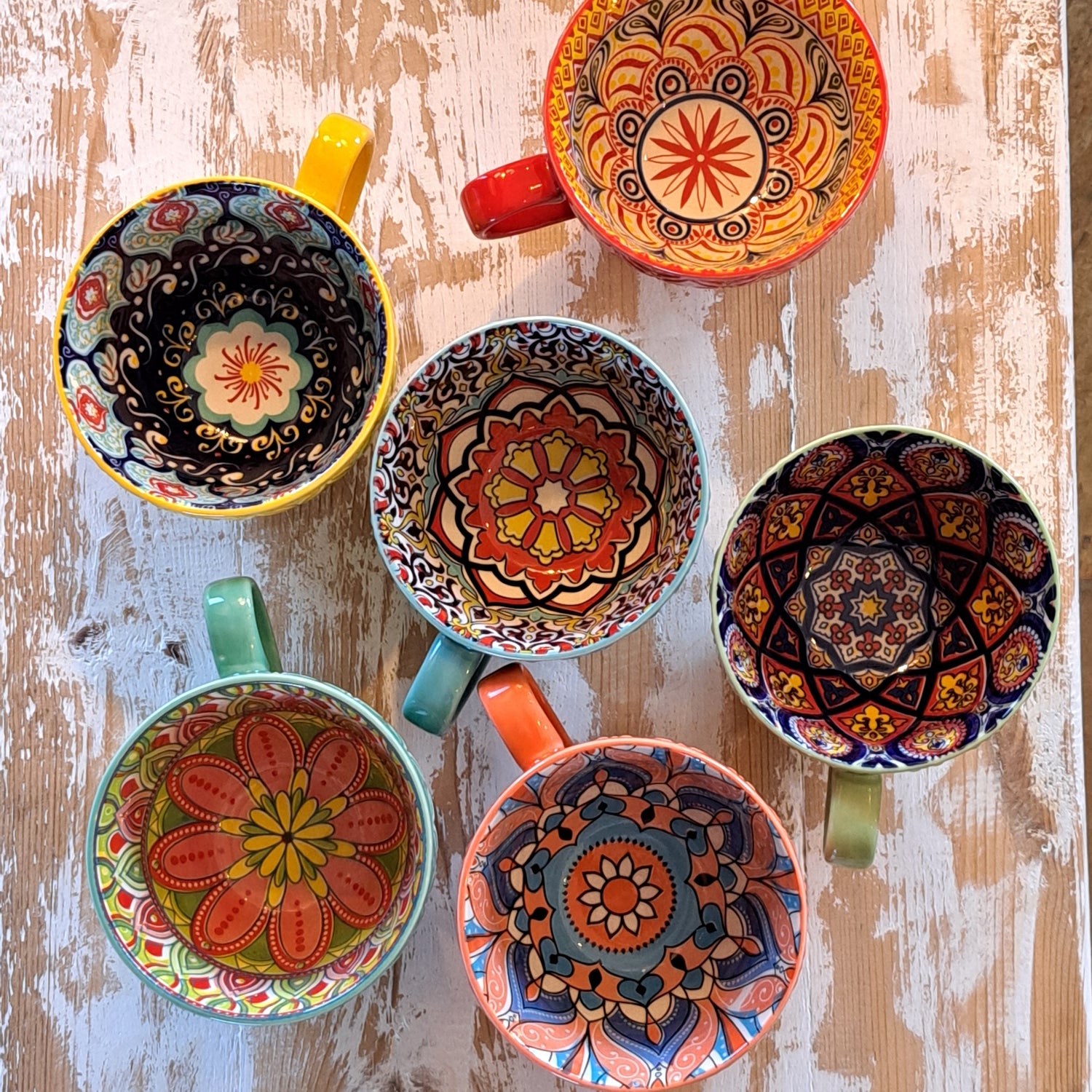 Beautiful, large size cups in a choice of six bright and colourful designs, while stocks last!
