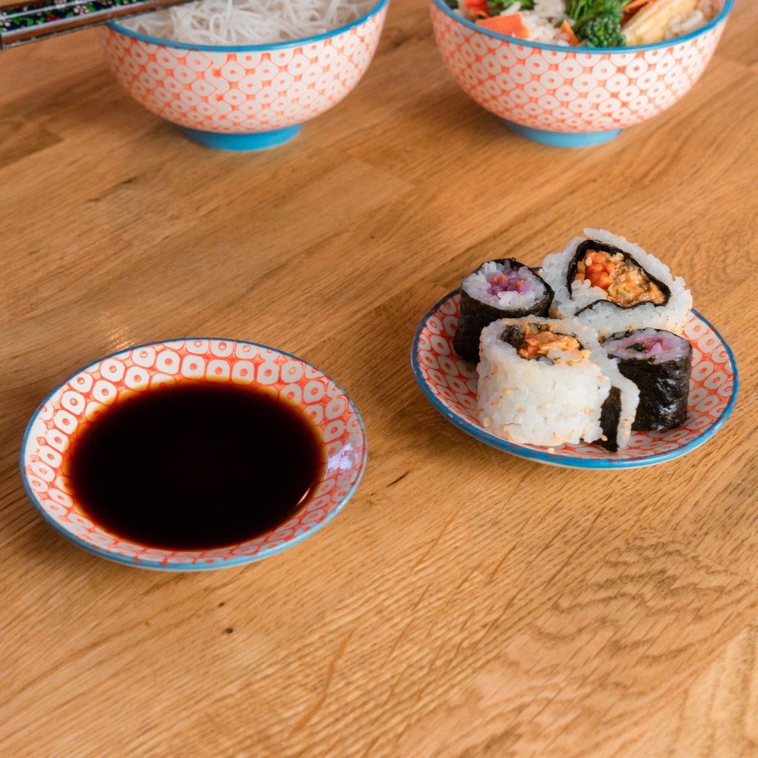 Hand printed porcelain mini dishes, perfect for dips or individual appetisers!