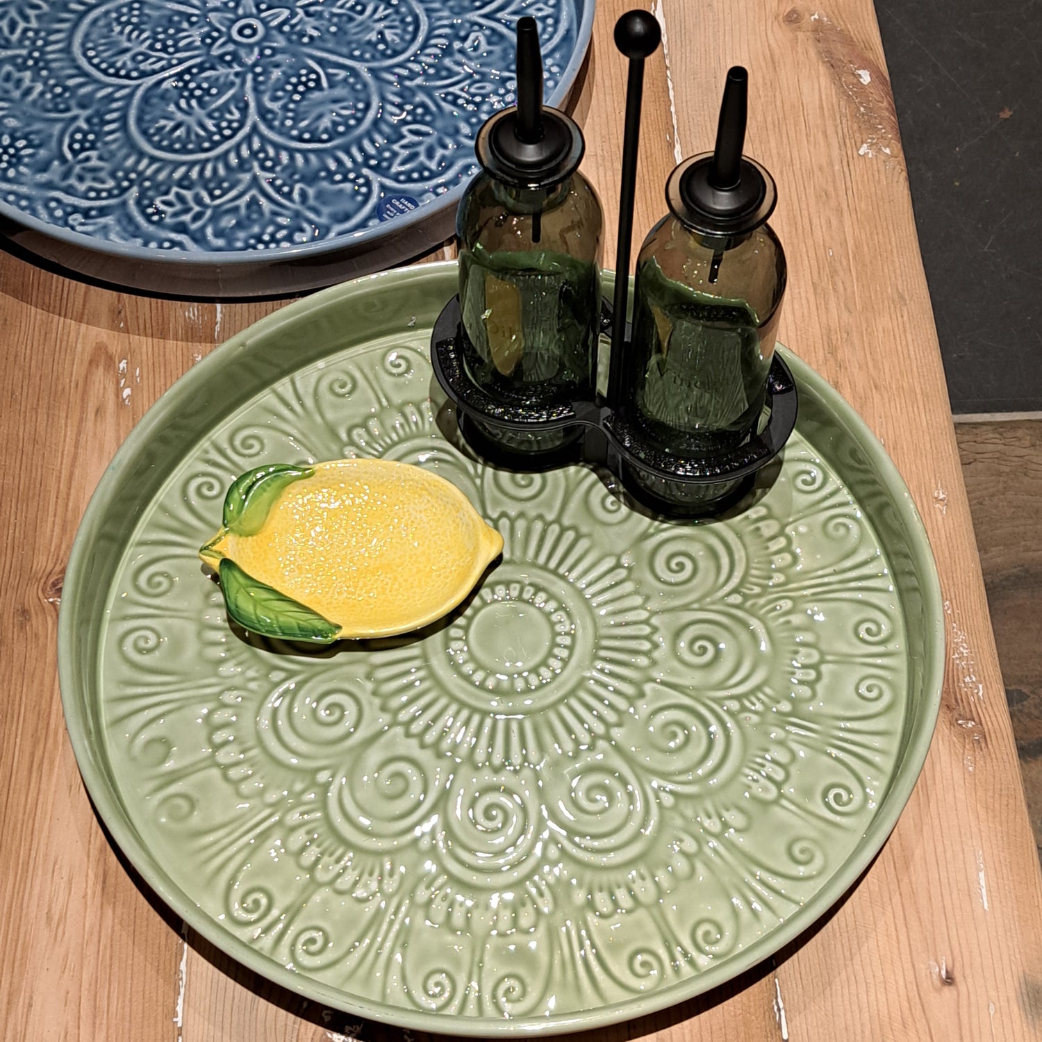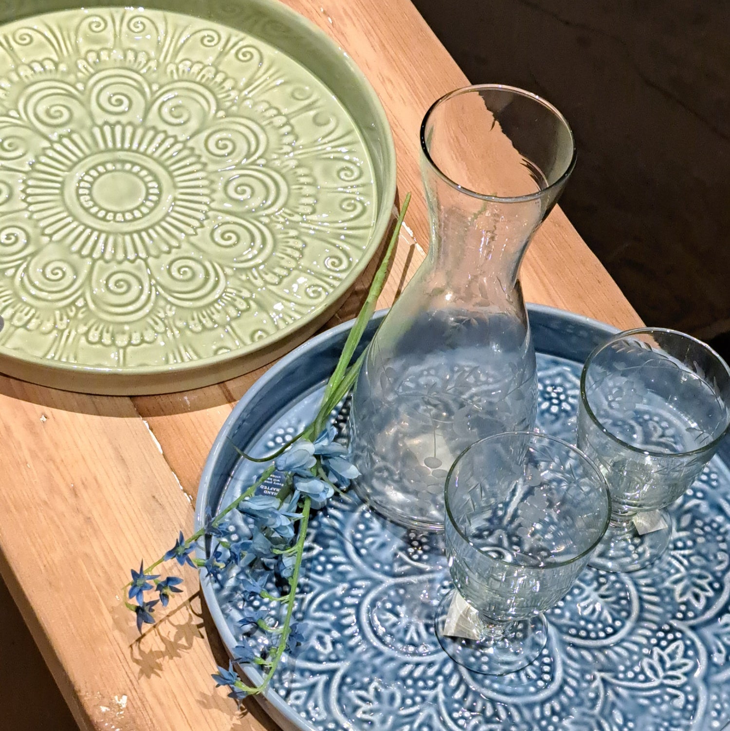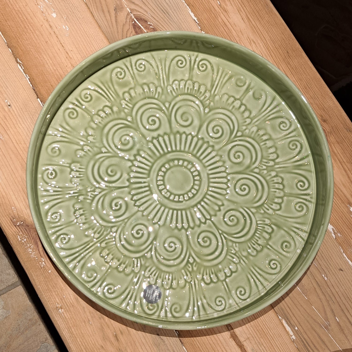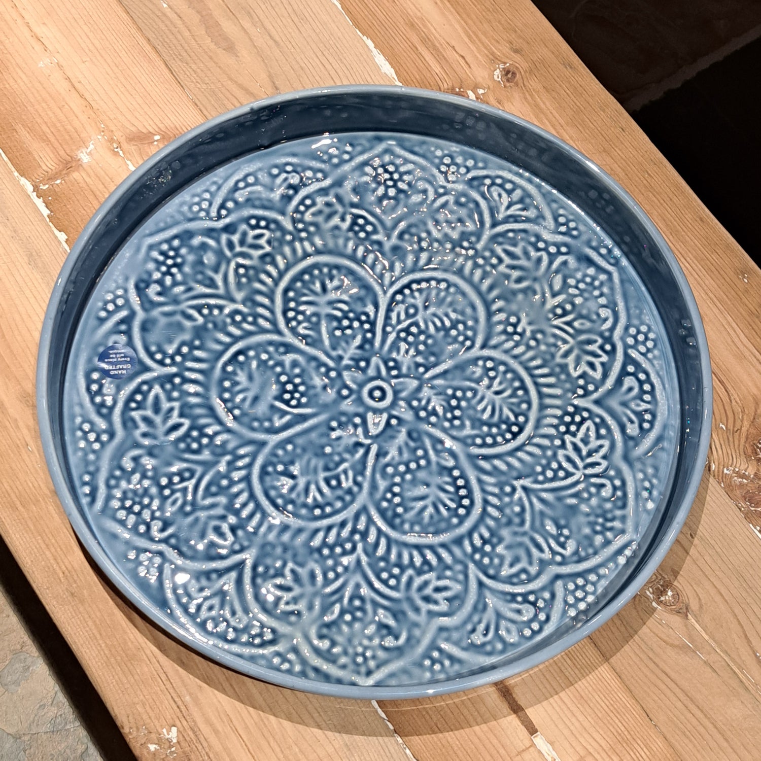 Stunning 32cm round tray with beautiful embossed pattern and a glossy finish.