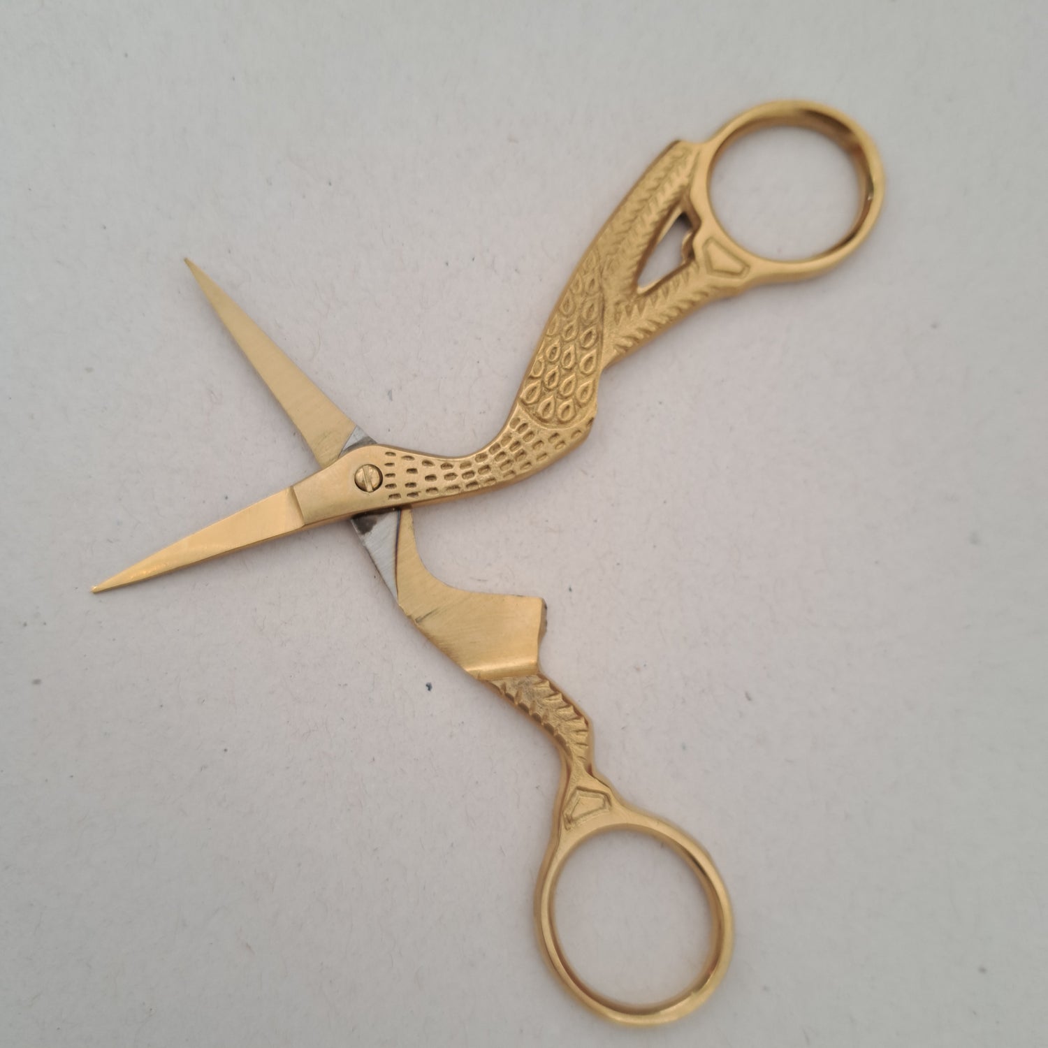 Vintage style, scissors in an aged brass colour, perfect for embroidery. Measuring approximately 10.5cm long.