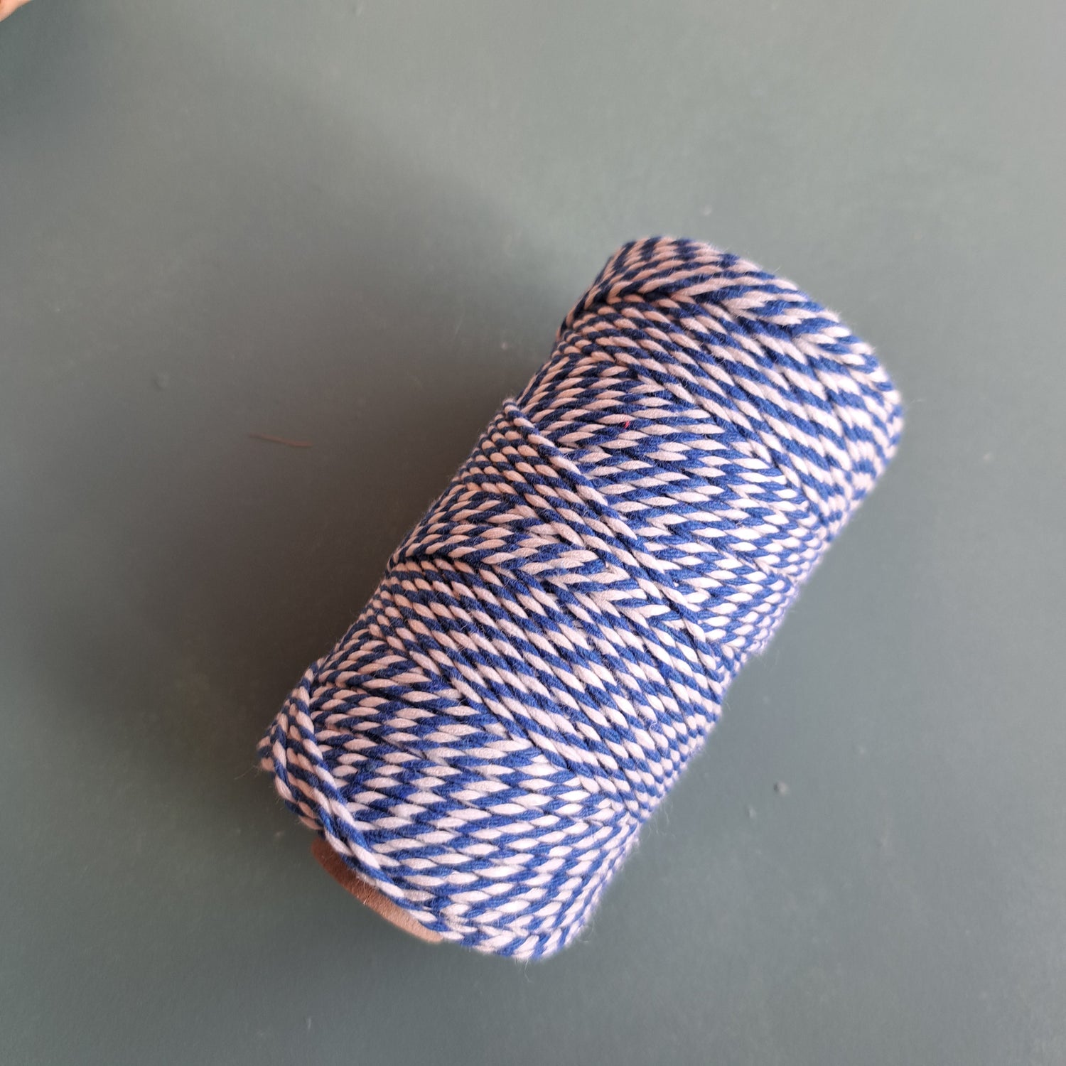 100g bobbin in three colourways; red and white, blue and white, green and white.